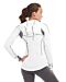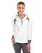 • White full zip hoodie with gray detail.