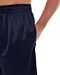 • Navy polyester pinstripe shorts.